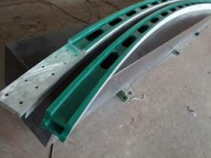 對弧樣板是檢查連鑄機各段位彎曲半徑是否滿足設計要求的檢測工具之一。也是_連鑄機能否一次性拉坯成功的關鍵測量量具。由于對弧樣板的設計精度要求 別,一般彎曲半徑制造精度要求為±0.02-0.05,平面要求為±0.05,平行度要求為±0.03。